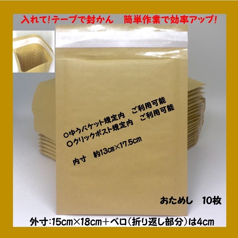 10枚 クッション封筒 茶色 15×18cm エアキャップ封筒 プチプチ封筒 緩衝材入り