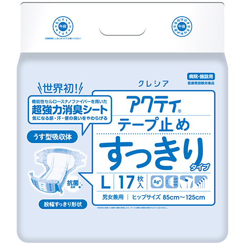 日本製紙クレシア アクティ テープ止めすっきりタイプ Lサイズ 1パック(17枚) (お取寄せ品)