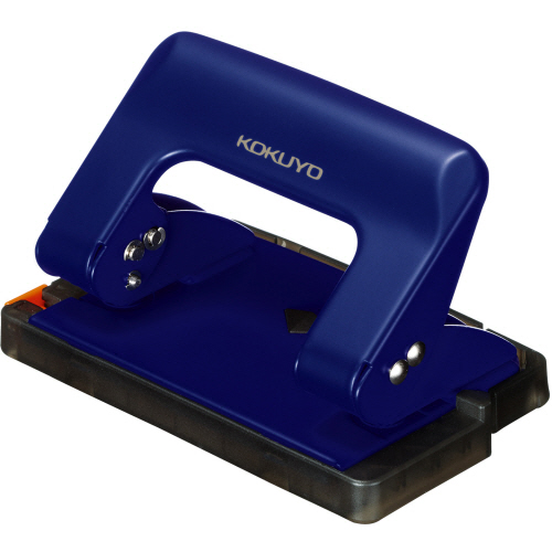●テコ比がアップし、従来よりも軽い力で穴あけができる2穴パンチ、17枚穿孔、色は青です。