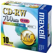 メーカー:マクセル 品番:CDRW80PW.S1P10S 700MB、4倍速対応CD−RW