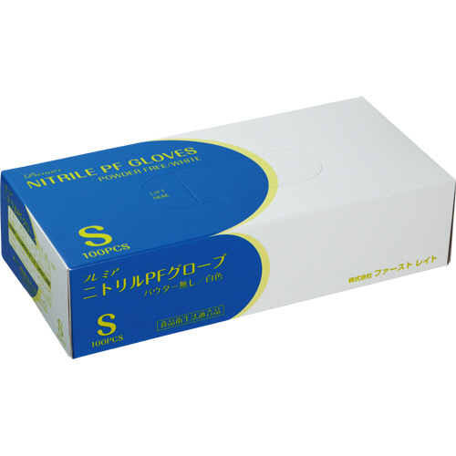 ファーストレイト プレミアニトリルPFグローブ パウダーフリー ホワイト S FR−856 1箱(100枚)