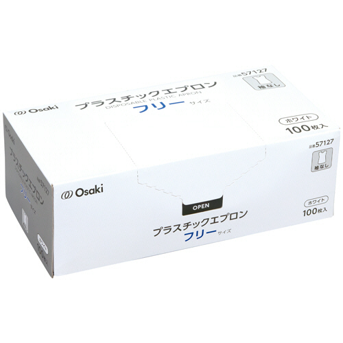 オオサキメディカル オオサキ プラスチックエプロン 袖なし ホワイト 1箱(100枚)