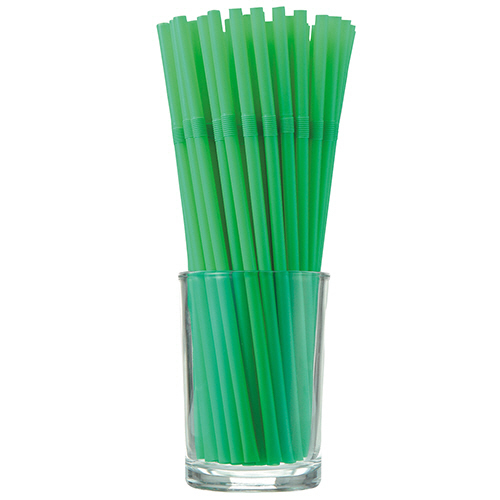 ●500本バラ詰めのフレックスストロー。ストロー色はグリーンです。