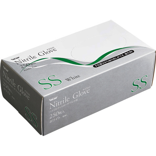 川西工業 ニトリル 使いきり手袋 粉なし SS ホワイト #2060 1箱(250枚)