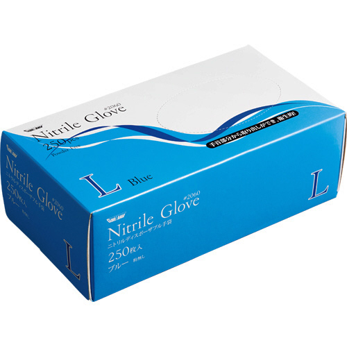 川西工業 ニトリル 使いきり手袋 粉なし L ブルー #2060 1箱(250枚)