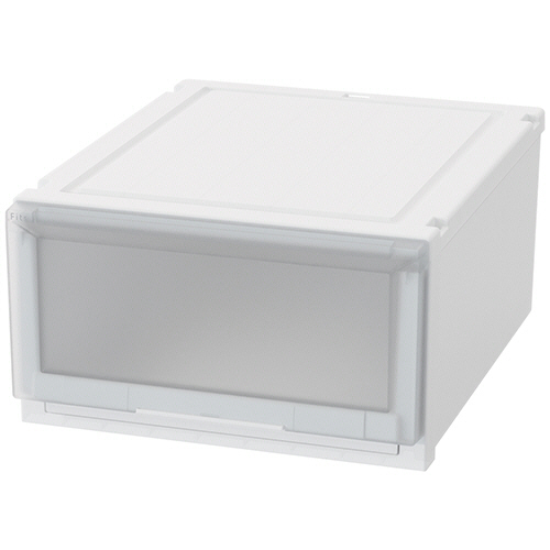 ●上からも下からも引き出せるフィッツケース アドバンス。幅45×奥行55×高さ25cmタイプ、色はホワイトクリアです。