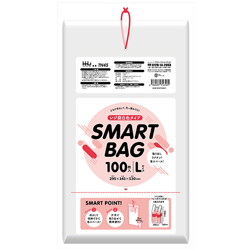 ハウスホールドジャパン スマートバッグ ひも付きレジ袋 平置きタイプ L 白 TN45 1パック(100枚)(お取寄せ品)