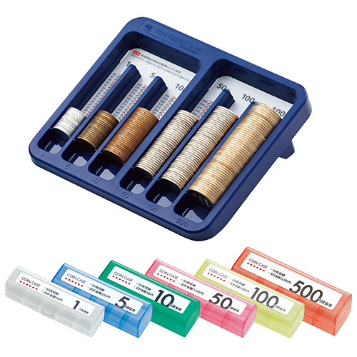 ●コインケースは仕切り付(10枚毎)、角形で転がらず取り扱いに便利です。金庫での保管や釣り銭のストックに。