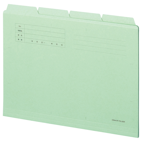 ●記入欄付のカットフォルダー4山、色はグリーンです。