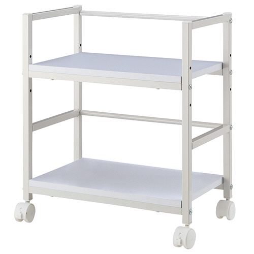 ●上棚の位置は3段階で調節できるホワイトのワゴン。