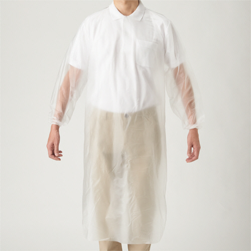 川西工業 ポリエチ袖付エプロン フリーサイズ クリア 4442 1箱(10枚)