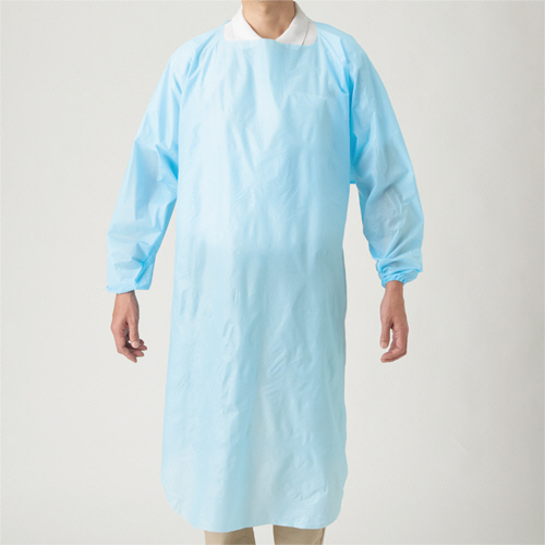川西工業 ポリエチ袖付エプロン フリーサイズ ブルー 4442 1箱(10枚)