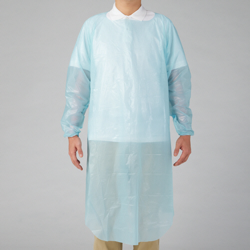 ●湿性生体物質(血液、体液など)や薬液などが飛散する可能性がある場合に使用するプラスチックエプロンです。