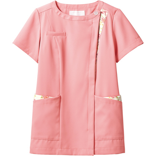 メーカー:住商モンブラン 品番:LW601-62-LL 英国の老舗ブランド「ローラアシュレイ」が手がけたナースジャケット。 <襟もとのアシンメトリーの配色がアクセント><BR>商品の色はローズ×アメリピンクになります。<LAURA ASHLEYオリジナルボタン><BR>商品の色はローズ×アメリピンクになります。<便利なウエストループと配色が印象的なポケット><BR>商品の色はローズ×アメリピンクになります。<ロゴ刺繍は左袖に入っています><BR>商品の色はローズ×アメリピンクになります。