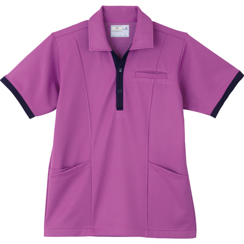 ケアワークシャツ リップル防縮ニット パープル SS CR129−80 1着(お取寄せ品)