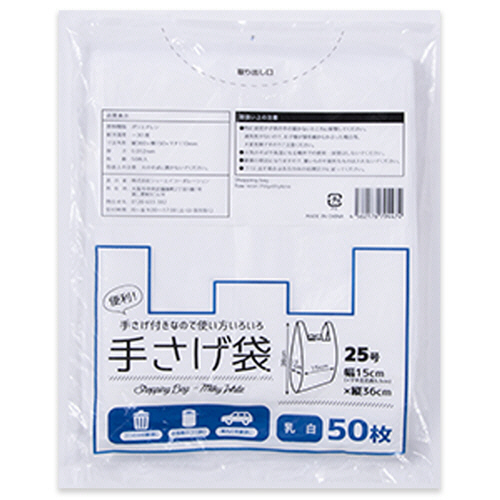 ●寸法150/260×H360mm 厚さ0.012mmの手さげ袋。色は乳白・50枚入です。