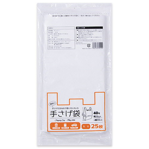 ●寸法260/400×H480mm 厚さ0.015mmの手さげ袋。色は乳白・25枚入です。