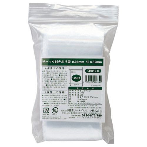 伊藤忠リーテイルリンク チャック付ポリ袋 0.04×60×85mm CHB40−B 1パック(100枚)