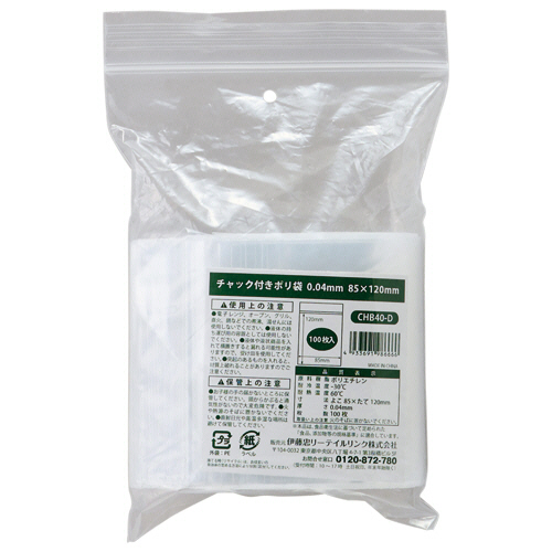 伊藤忠リーテイルリンク チャック付ポリ袋 0.04×85×120mm CHB40−D 1パック(100枚)