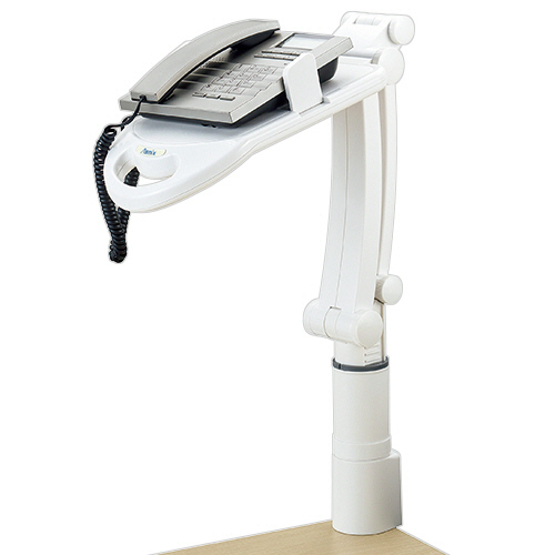 メーカー:アスカ 品番:TS9802 360°回転し、手前に引き寄せられるテレフォンアーム。 手前に引き寄せ可能。取り付け簡単なクランプタイプ。