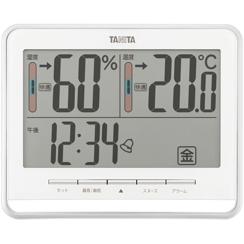 メーカー:タニタ 品番:TT-538WH 温度・湿度の快適レベルを5段階でお知らせ。