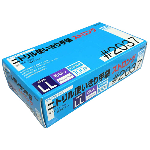 川西工業 ニトリル使いきり手袋 ストロング 粉なし ブルー LL 2037B−LL 1箱(100枚)