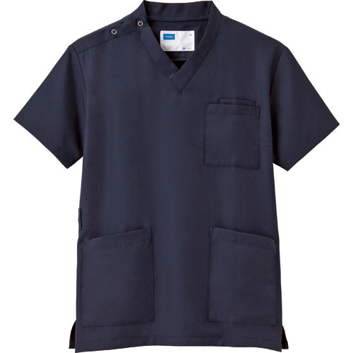 メーカー:自重堂 品番:WH11485-029-LL 薄手で丈夫で動きやすいスクラブ <胸ポケットは携帯の収納を考えたダブル仕様><BR>商品の色はネイビーになります。<内ポケット仕切りで小物の収納にも便利><BR>商品の色はネイビーになります。<消臭&抗菌効果のあるテープ付><BR>商品の色はネイビーになります。<鍵などの取り付けに便利な脇ループ><BR>商品の色はネイビーになります。