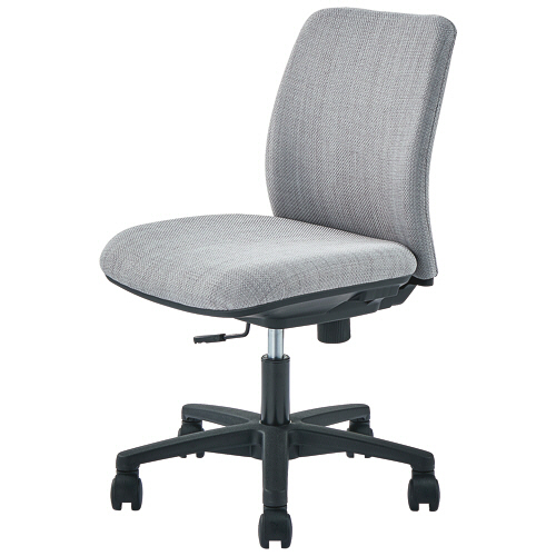 ●脚幅560mmで幅のせまい机にも収まりやすいコンパクトチェア。色はライトグレーです。