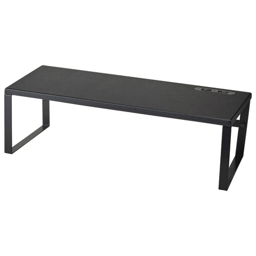 ●幅560mm、高さ170mmのコンセント付モニターラック。カラーはブラックです。