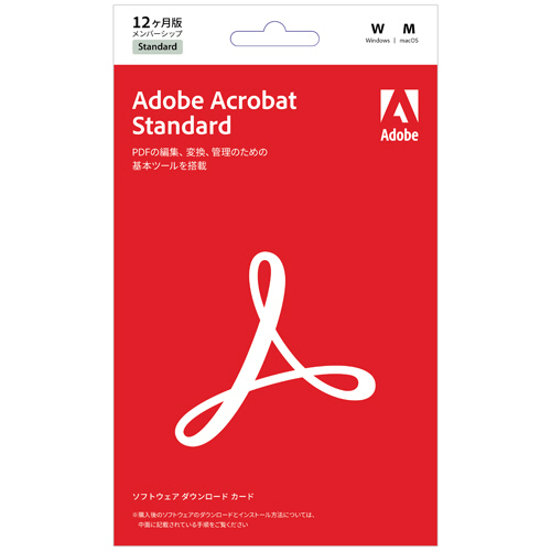 ●Acrobat Standardのダウンロードカード版です。ダウンロードカード版(Live Card)は、12ヶ月のサブスクリプション期間で、予めインストールコードが有効化されたカードで提供するものです。永続ライセンスではございません。