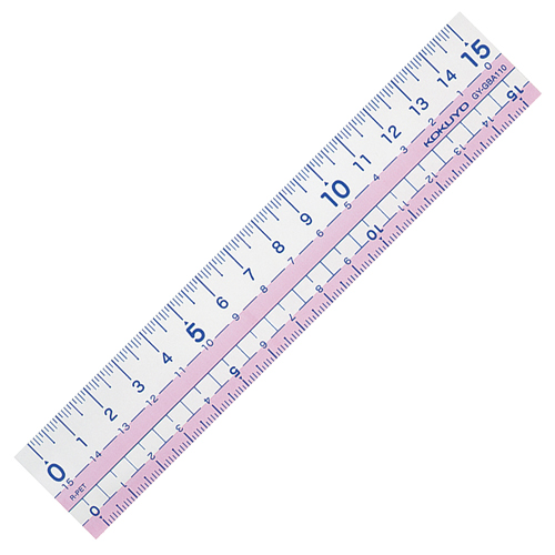 メーカー:コクヨ 品番:GY-GBA110P 大きな数字と山型目盛りで読みやすい直線定規。右側から始まる左利き対応目盛りも役立つ。 <パッケージ><使用イメージ>