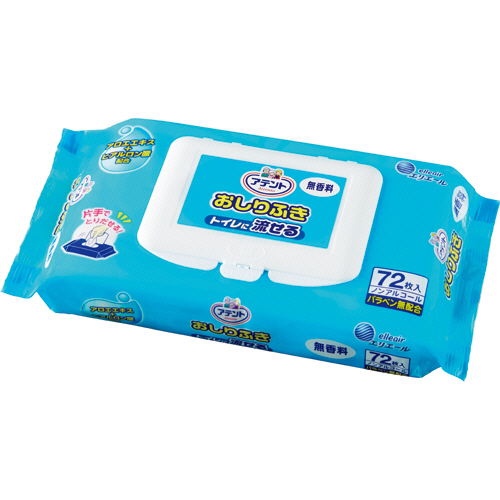 メーカー:大王製紙 品番:733593 アロエエキス+ヒアルロン酸配合。片手でとりだせる流せるおしりふき。