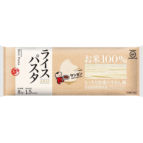 メーカー:ケンミン食品 品番:21529 お米と玄米だけで作ったライスパスタ。小麦・食品添加物不使用・低GI食品です。パスタにも、サラダにも。