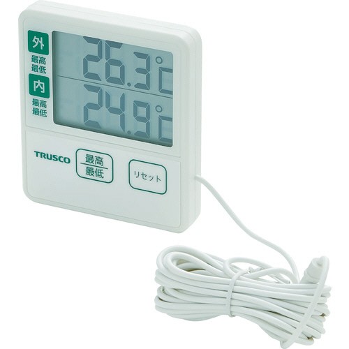 メーカー:TRUSCO 品番:IOT-2070 屋外・屋内の温度が同時に確認できます。