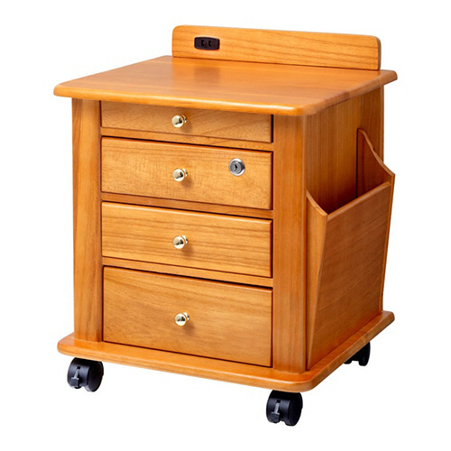 ファミリー・ライフ ファムプラス 天然木リビングワゴン キャスター・コンセント付 ライトブラウン 0353810 1台 (直送)