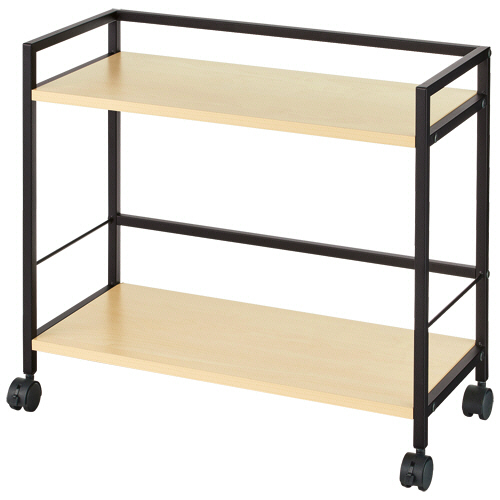 ●2段ワイドのデスクワゴン。天板はナチュラル、フレームはブラックです。