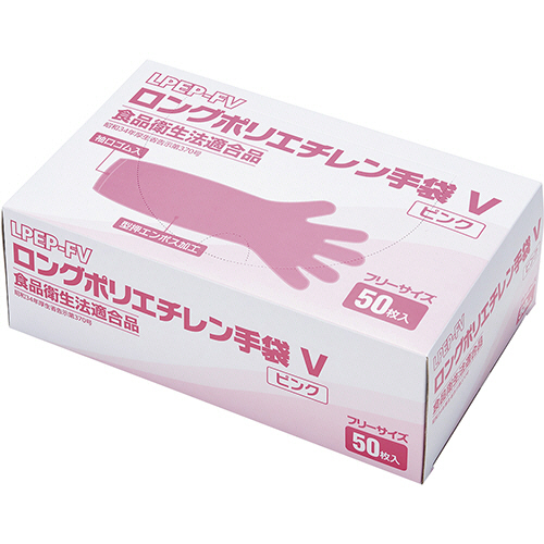 メディテックジャパン ロングポリエチレン手袋V ピンク LPEP−FV 1箱(50枚)(お取寄せ品)