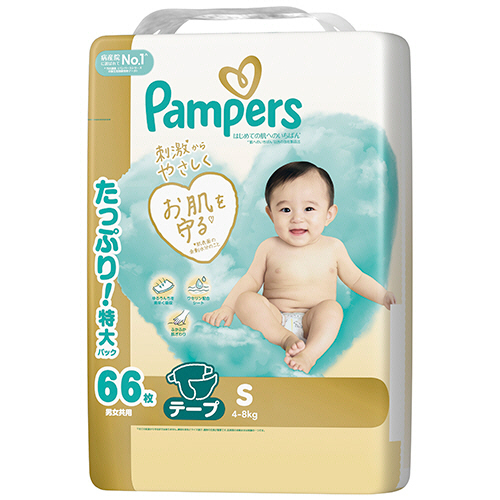 P&G パンパース はじめての肌へのいちばんテープ ウルトラジャンボ S(4−8kg) 1セット(198枚:66枚×3パック)(お取寄せ品)