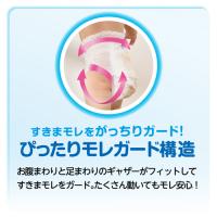 ●すき間モレをがっちりガード!ぴったりモレガード構造でお腹まわりと足まわりのギャザーがフィットしてすき間モレをガード。たくさん動いてもモレ安心!