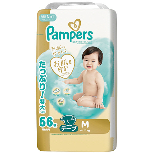 P&G パンパース はじめての肌へのいちばんテープ ウルトラジャンボ M(6−11kg) 1セット(168枚:56枚×3パック)(お取寄せ品)