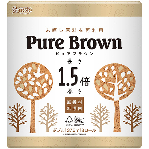 丸富製紙 トイレットペーパー 花束 ピュアブラウン 無漂白 1.5倍巻き ダブル 芯あり 37.5m 1セット(64ロール:8ロール×8パック)