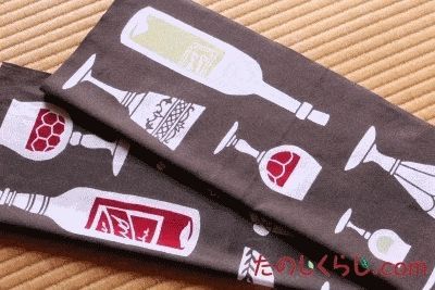 ワインやビールの絵がポップな印象の手ぬぐいですね。