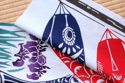 この「手拭い あやめに鯉幟 (てぬぐい あやめにこいのぼり)」は、