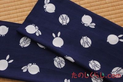 紺地に、まんまる可愛い白い兎がたくさんいる柄です。