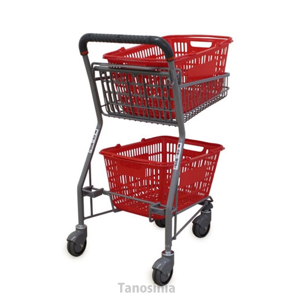 便利カート / PY904-C100 ショッピングカート カゴ3個搭載可能 シルバーメタリック 買い物 転がす 乗せる スーパー デパート ホームセンター バスケット かご