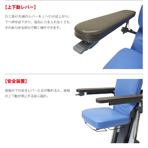 ・レバー操作ひとつでいすが上下動。