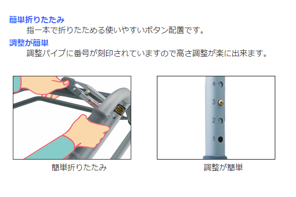○指一本でラクラク折りたためる取り扱いやすいボタン位置。