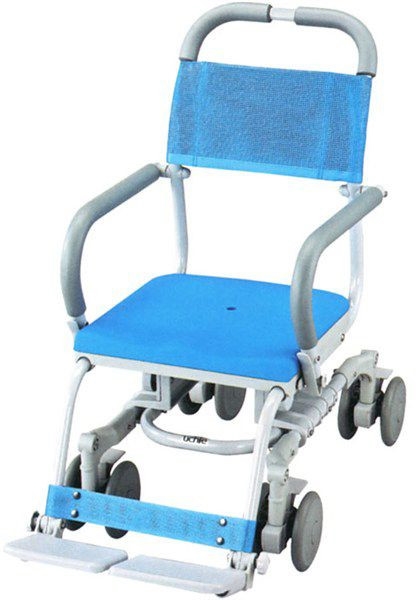 ・狭いスペースでも安心!自在輪で方向転換も楽々コンパクトシャワーキャリー○狭いスペースでもラクラク小回りキャスターが自在輪なので、その場での本体360°の回転や真横移動ができます。小回りがきくので介助者様の思い通りに移動ができ、狭い場所でもラクラクご利用いただけます。○フットレスト付け替えでコンパクトにフットプレートを前輪上部に取付可能。奥行75.5cmとコンパクト。狭い場所でも楽に取り回しできます。(短奥行仕様)○5段階座面高さ調節可能高さ調節ネジで簡単に調節できます。工具は不要です。座面は38〜46cm、5段階、2cm刻みの調節が可能です。※座面の高さを変えてもステップまでの長さは変わりません。(標準仕様時)○背シートの張り具合を調節できます背シートは体の状態によってマジックテープで張り具合を変えることができます。また、取り外して陰干しすることができます。○フットレストは簡単に脱着できます片側ずつ簡単に脱着できますので、立ち座りの時に邪魔になりません。また、フットレストを外すとコンパクトになりま