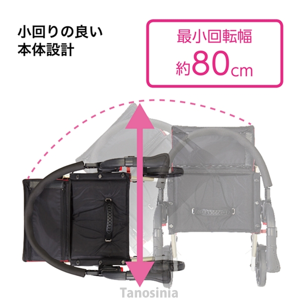 ●標準機能/折りたたみ、ハンドル高さ調整、背もたれ、杖・傘置き付