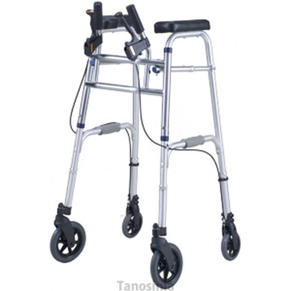・アームレストに前腕をのせて、グリップとブレーキを握ることで、お身体の荷重をしっかり歩行器にかけることができ、安定した歩行をサポートします。